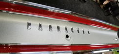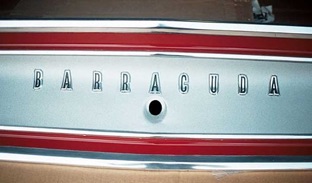 There were two makers of this panel. The top and bottom of the panel have a red stripe. The middle of the panel is painted light argent, with black on the stamped Barracuda lettering.