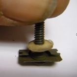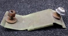 There is a fastener that is used. The large fastener is the original. The small fastener is the one that comes with the reproduced trim -- it is not very strong. I have also seen original trim with the smaller size fastener. I used the large rectangular fastener shown in the middle, cut down using Wiss sheet metal shears and then straightened using pliers. It is steel, but isn't very hard. I first tried using screws and washers, but couldn't find a screw head low enough to clear the inside ridge of the molding. Washers would have been a better choice because they are harder. Next time I'm going to try using the large original-type fasteners (they are reproduced).