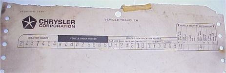 When the dealer sold the car, the Zone Office made a Build Record on their computer. The original warranty was activated from this. The Build Record was sent back to Chrysler where it was copied to microfilm. Build Records are still on file in Detroit, but many are not.