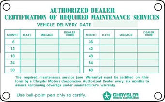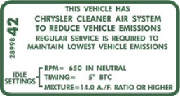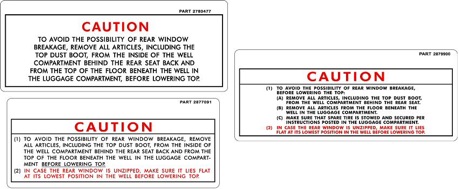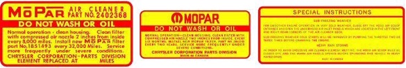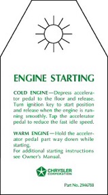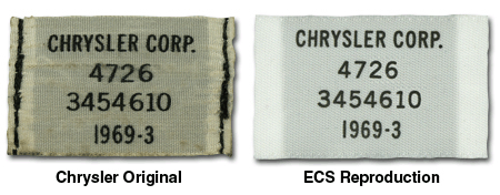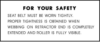 These labels were attached on all seat belts manufactured for the Chrysler Corporation. Their location depended on seatbelt applications and usage.