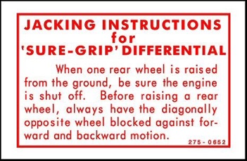 This decal is located on the axle housing tube of Dana equipped cars. It is positioned on the drivers side, inside of the leaf spring U-bolts and wraps around the axle tube.