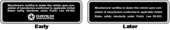 1968-1974 All Vehicles that used the Light Gray Chrysler Corporation Stamping on the Dash VIN Plate
