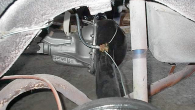 Built by the Dana Corporation, the housing is cast iron with tubular steel axle tubes pressed and welded in to form a complete carrier and tube assembly.
