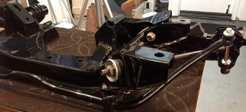 The process for refurbishing suspension parts is: remove rust with wire wheel, paint w/ POR-15 and then top coat w/ chassis black.