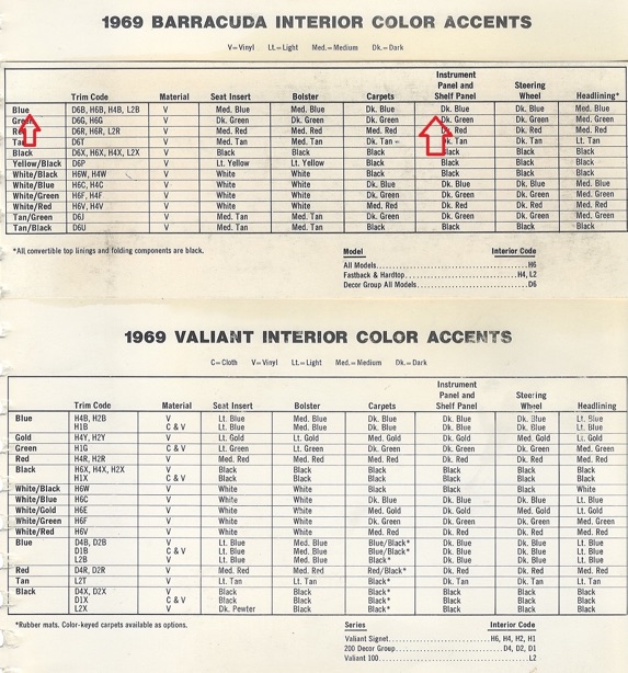 The dealer had a book called the Color and Trim Selector that was used for the customer to special order their car interior colors.