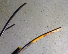 6. Start by sliding the bows into the listing pockets and centering them. At this point carefully trim the listings so that about 1" of the bow is exposed. (This step is done outside of the car.)