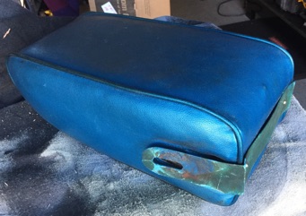 Install and glue the new carpeting to the back of the seat. Use weight plates to hold it nice and flat while it dries. Clean up the hinges, and put a coat of POR15 on the cast iron pieces that bolt to the floor of the car,