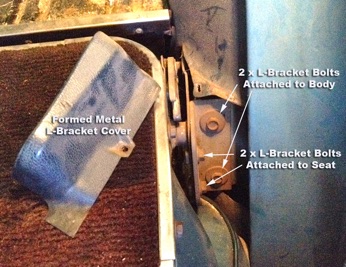 The Sebring seats have the top shoulder belt mount located on the upper seat back so that you wouldn't have to mount the shoulder point to the body anywhere. In fact, the entire seatbelt mechanism is built into the seat frame. This makes for a relatively easy solution on a convertible or hardtop if you want shoulder belts but don't want to have to weld a mount to your roof.